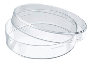 Caja Petri en poliestireno, estéril y desechable. Viene en paquetes cerrados estériles de c/576 unidades.